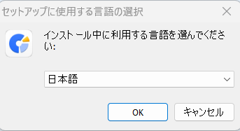 ダウンロードされたexeファイルを開くと、下記の画像になるので希望の言語を選択して「OK」をクリックします。