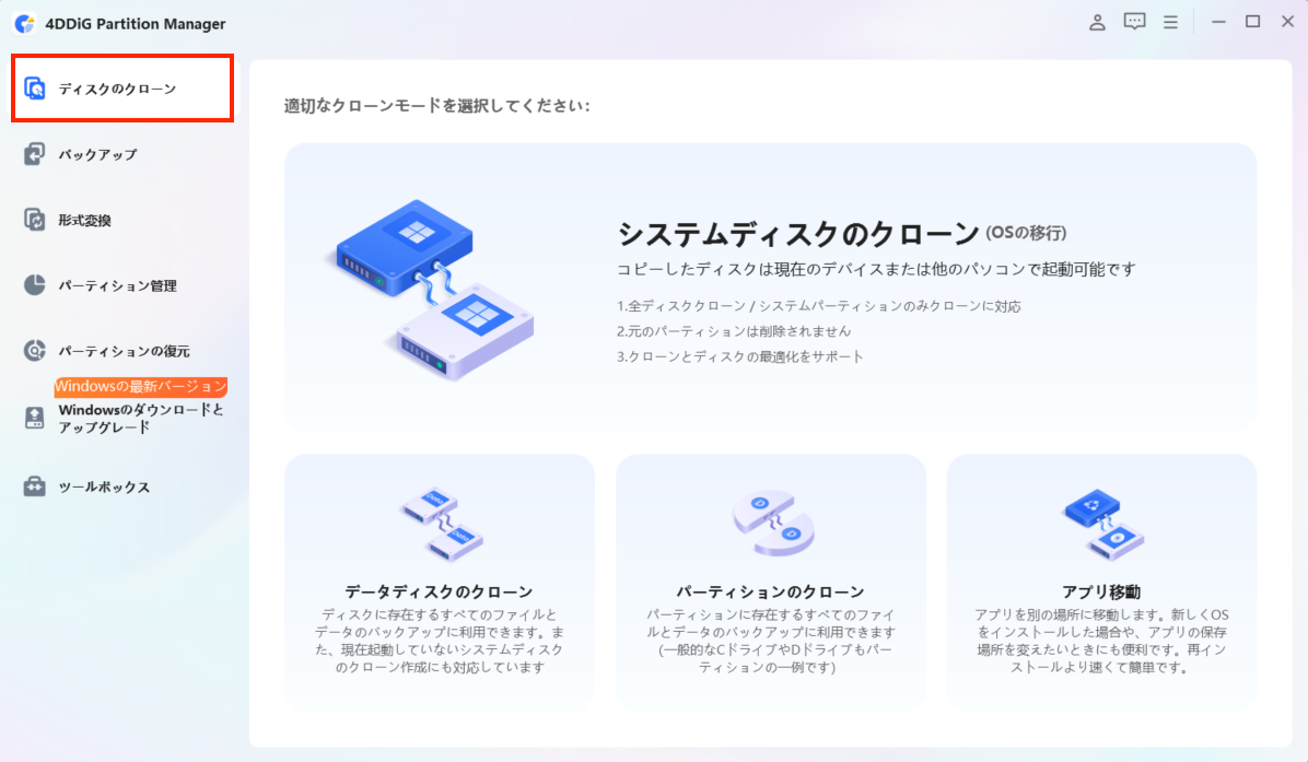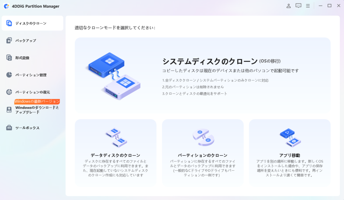 今回の4DDiG Partition Managerの最大の特徴は、データを失うことなく、Windows OSごとSSDへ移行できるという点。