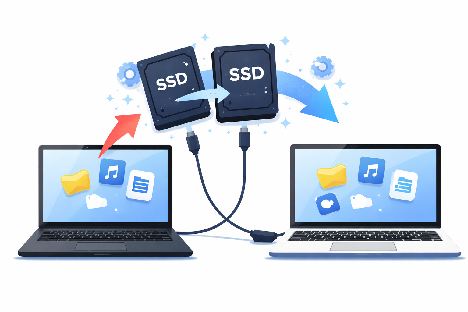 単なるファイルコピーではなく、PCの中身を丸ごと新しいSSD・HDDへ引っ越しできます。